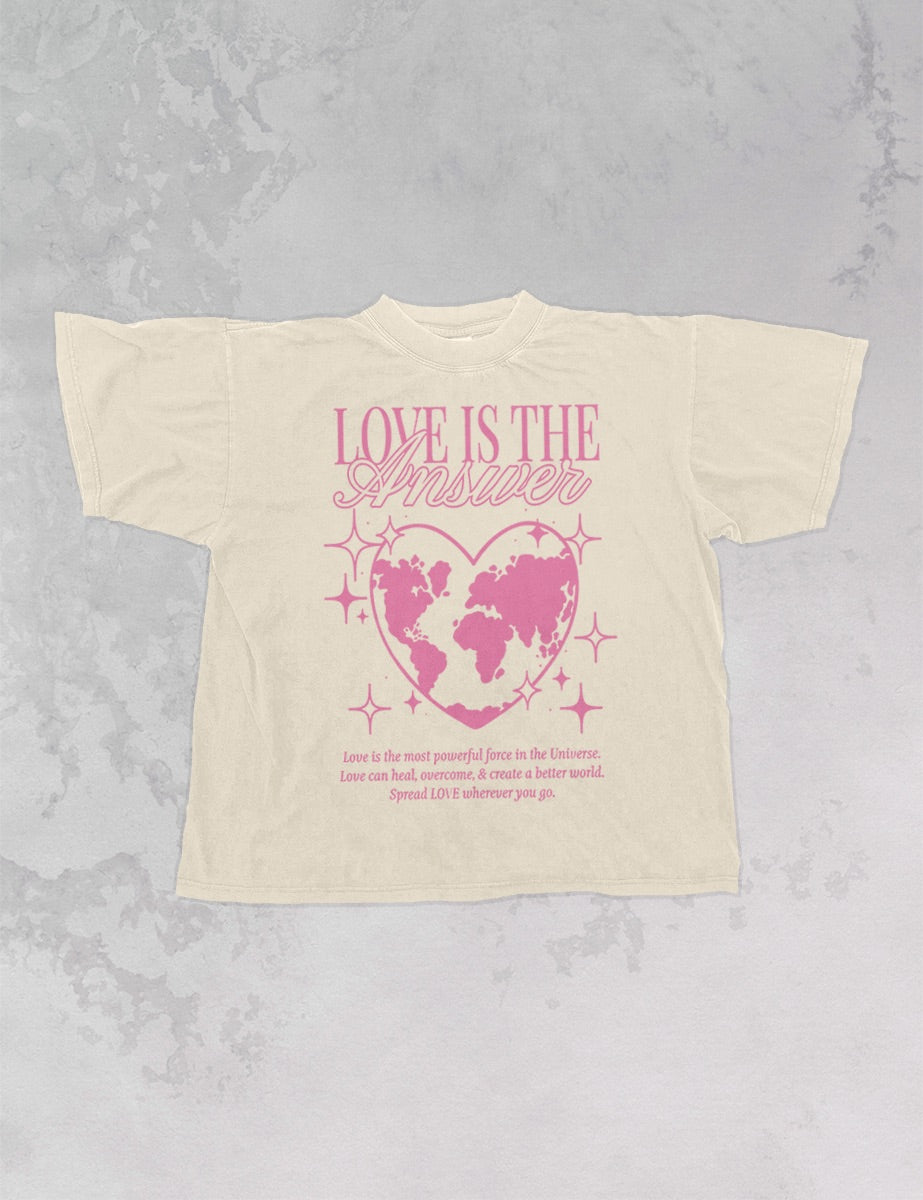 Show that Love is the Answer in our Y2K inspired varsity, oversized t-shirt, perfect for Valentine's Day & every day after.