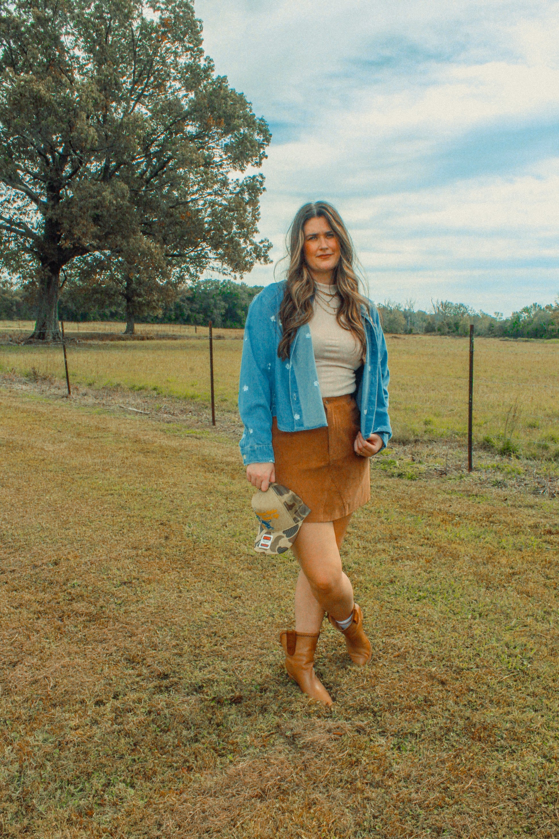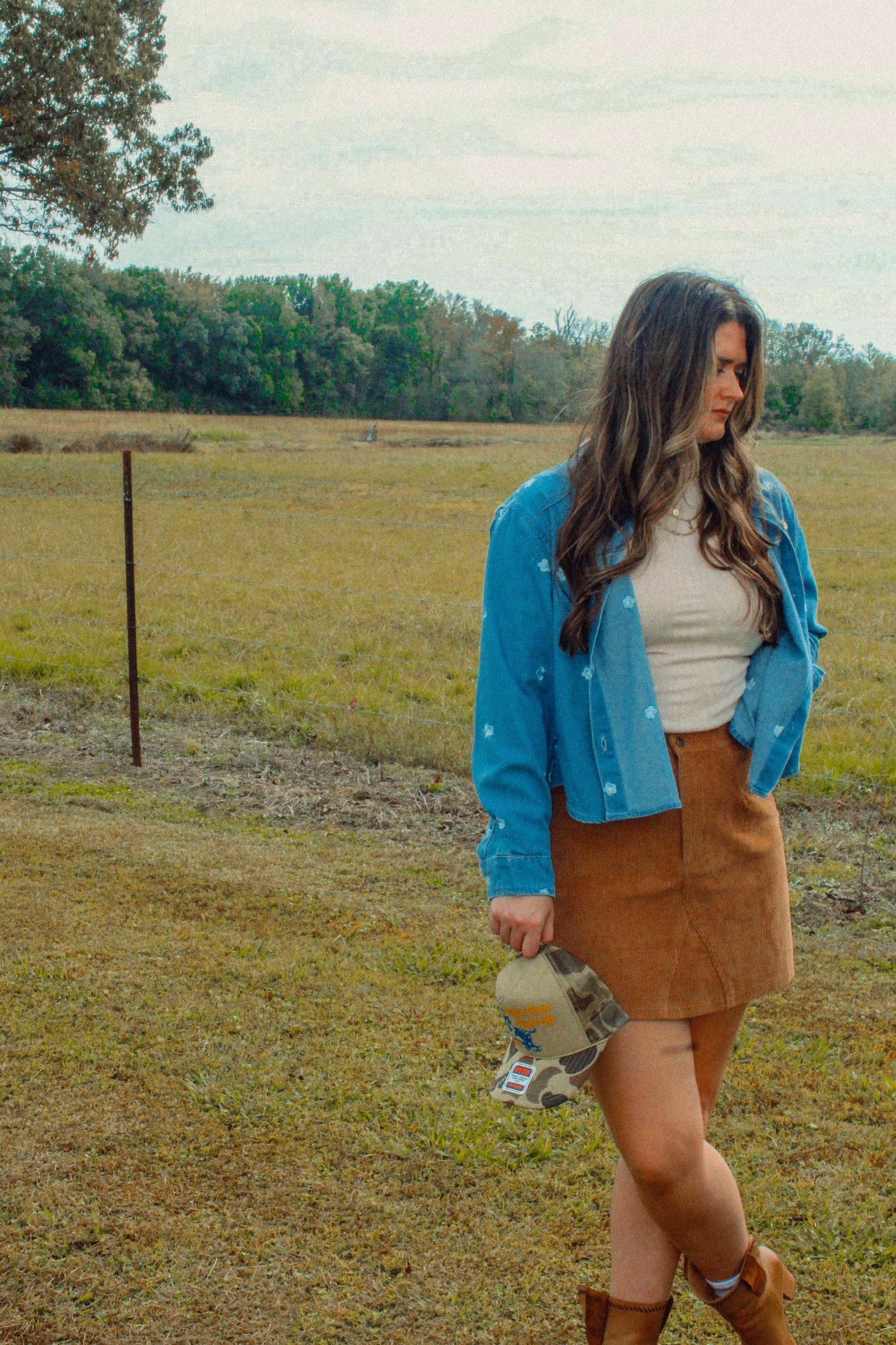 Looking for a denim button down with something a little extra? We've got you covered with our embroidery flower denim button down.