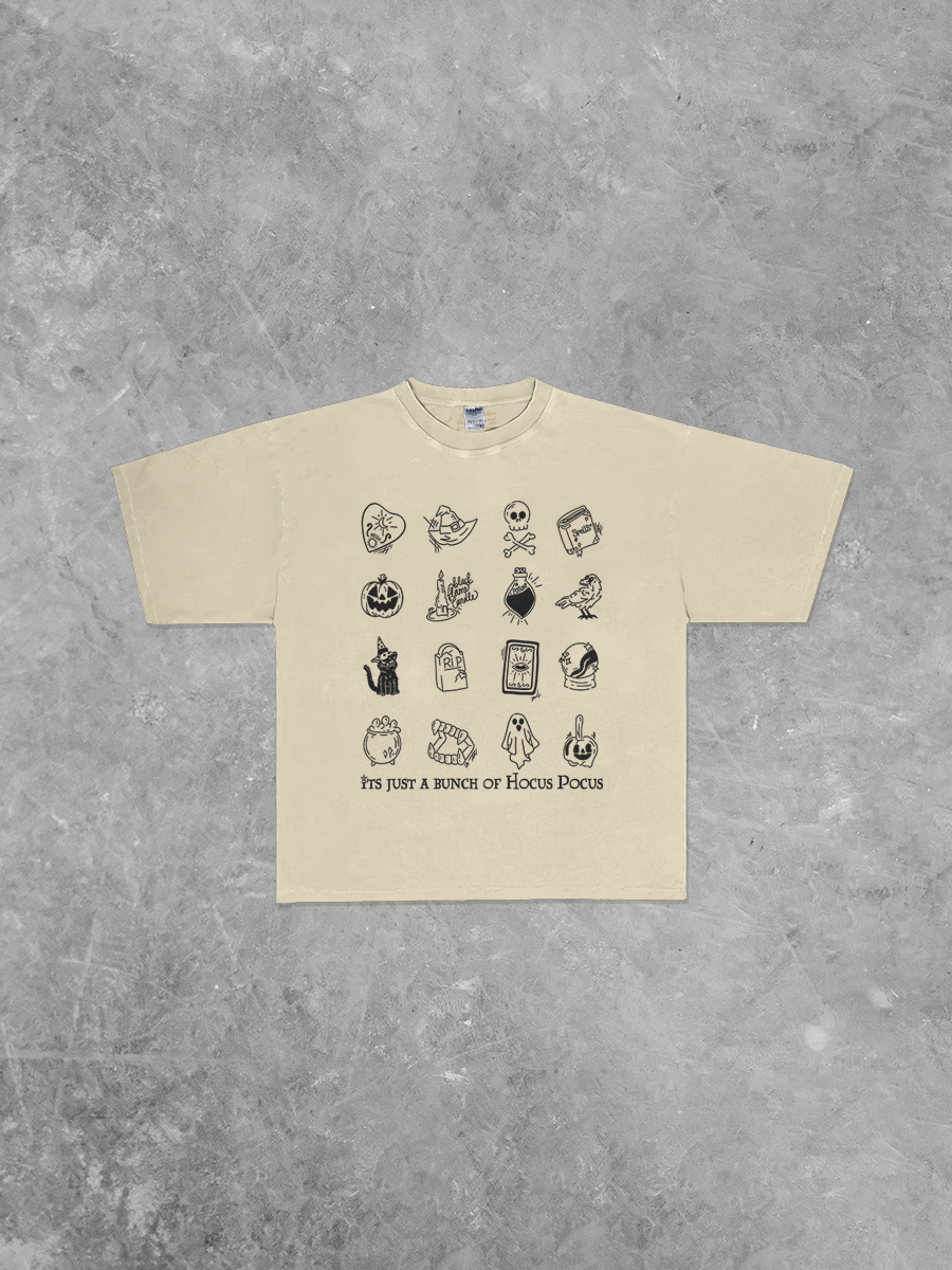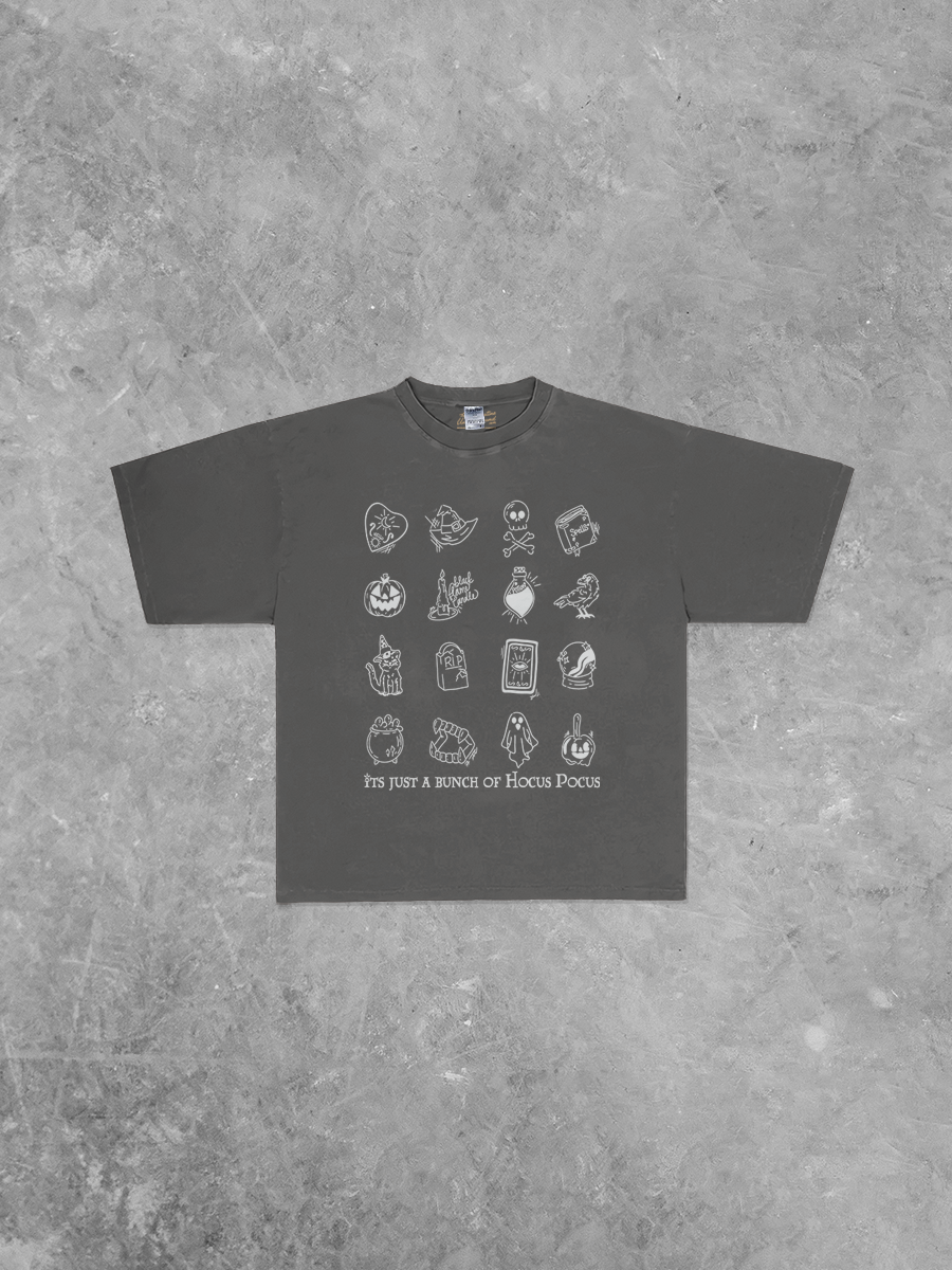 Celebrate spooky season with this boxy oversized Halloween graphic tee that features the phrase "It's All A Bunch Of Hocus Pocus".