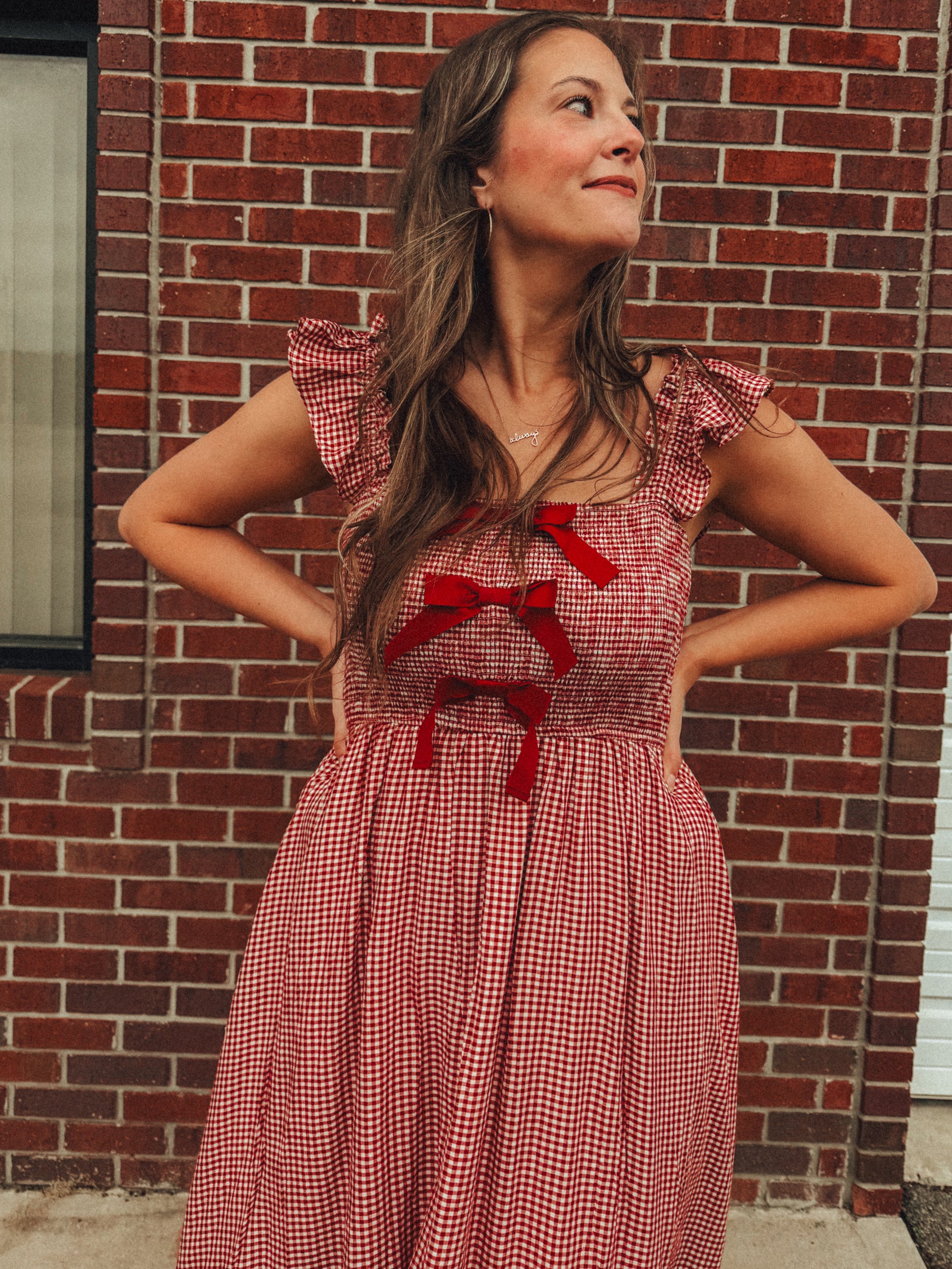 Red Gingham Bow Detail Christmas Maxi Dress