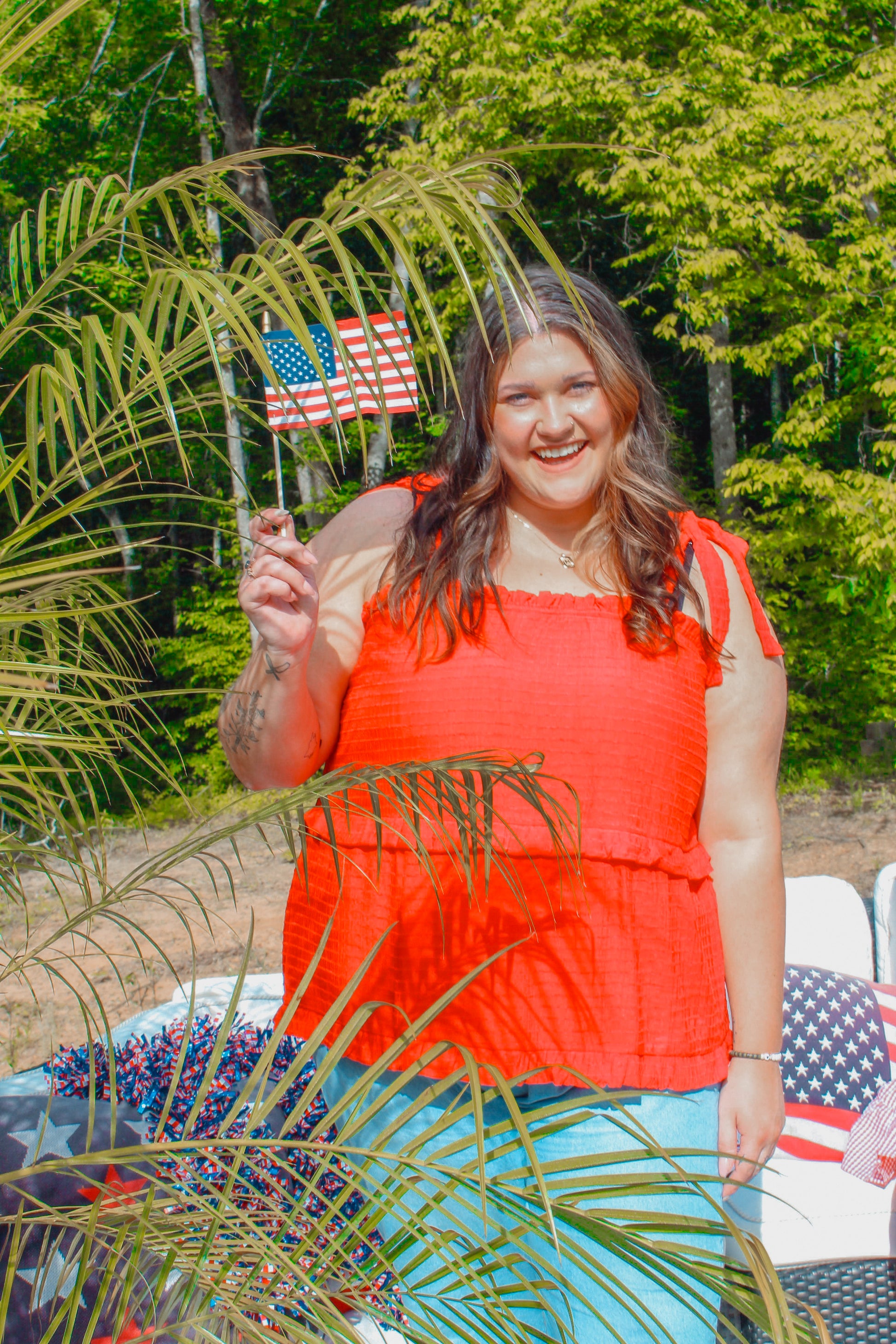 Get all of the Americana vibes in our red ruffled curvy blouse!