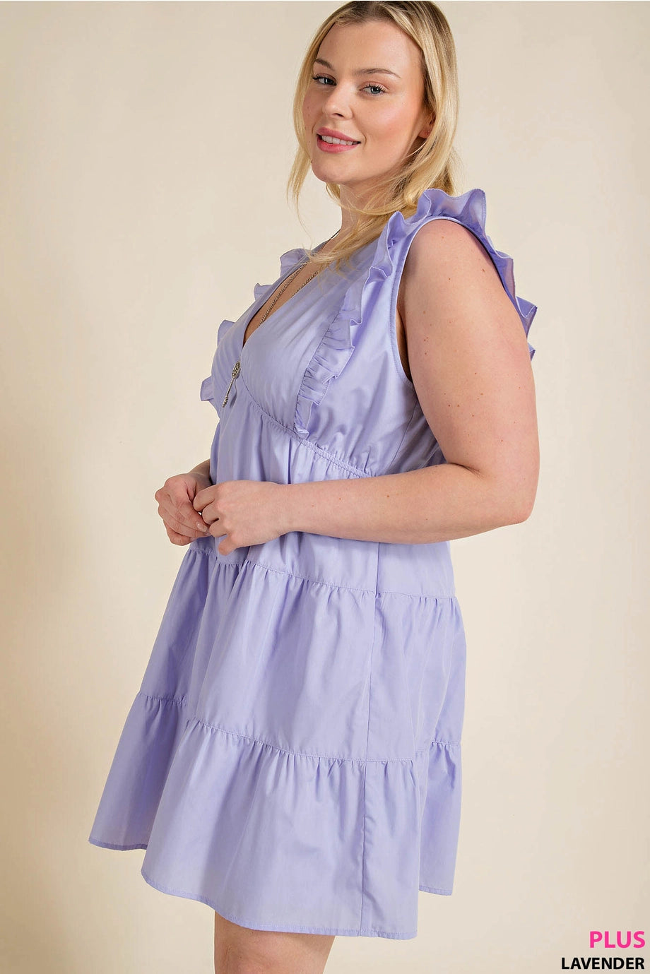 - SOFT POLY COTTON FABRIC RUFFLE SIDE POCKET LINED ELASTIC WAIST TIERED DRESS (plus size clothing)
