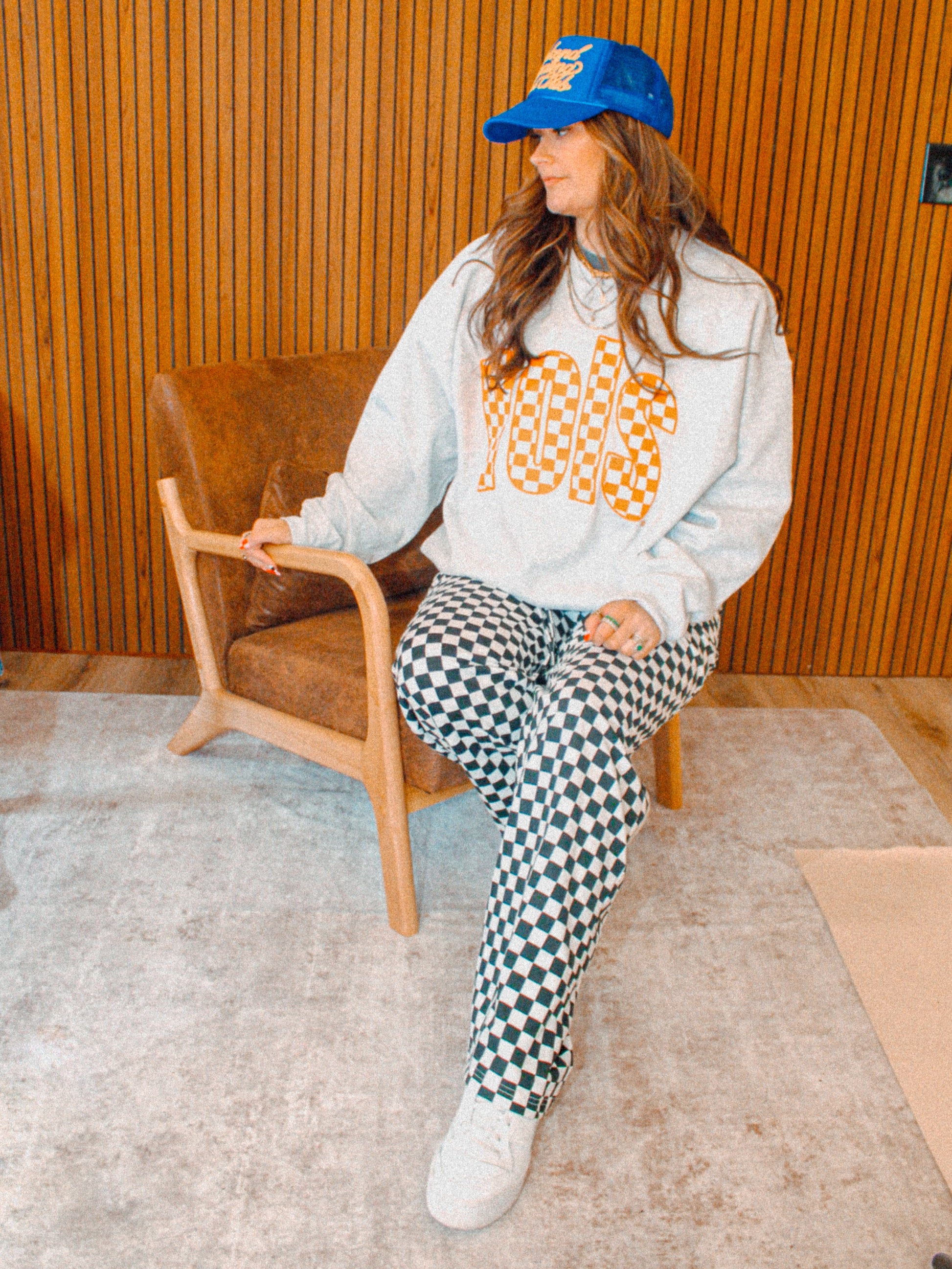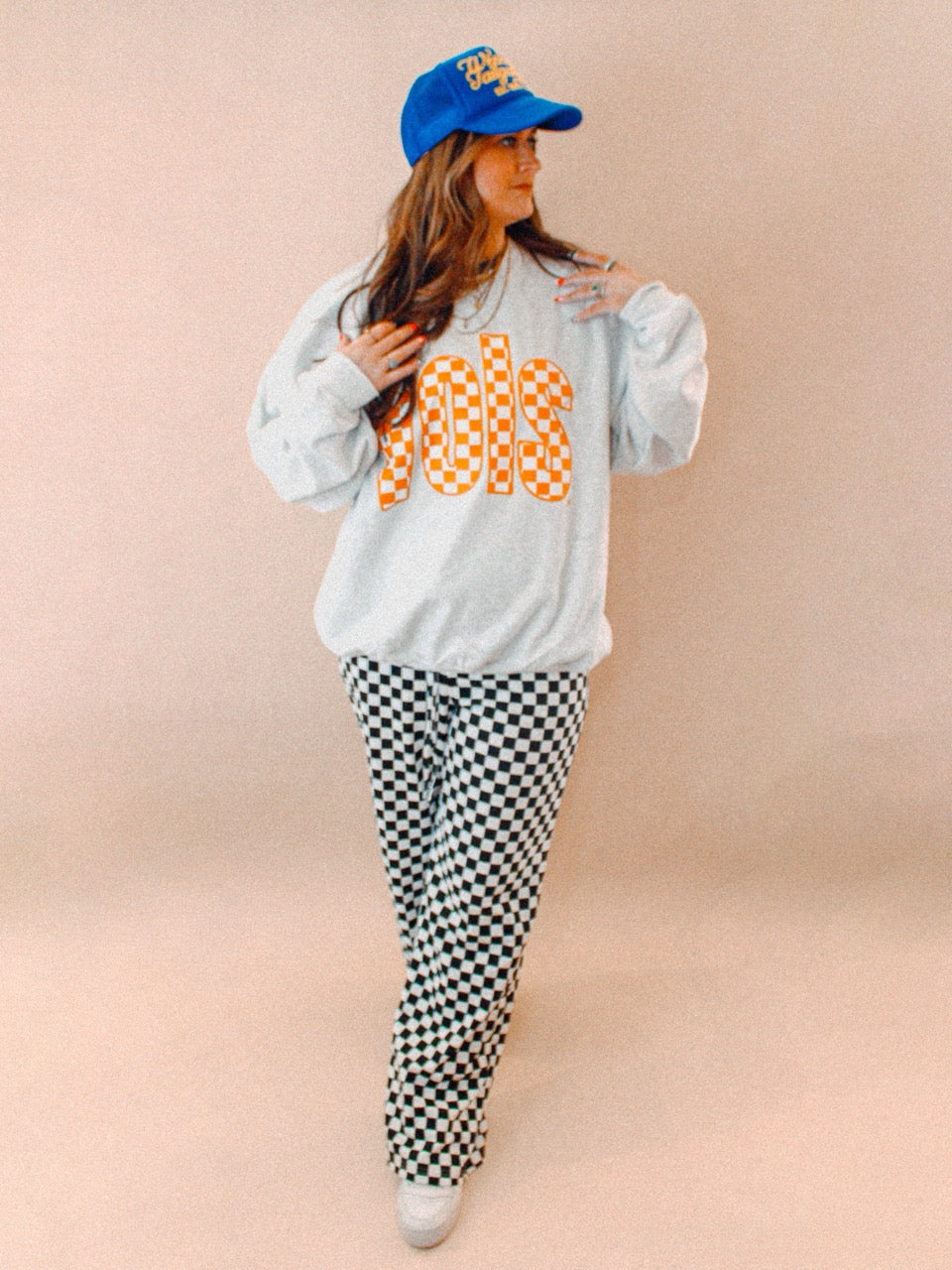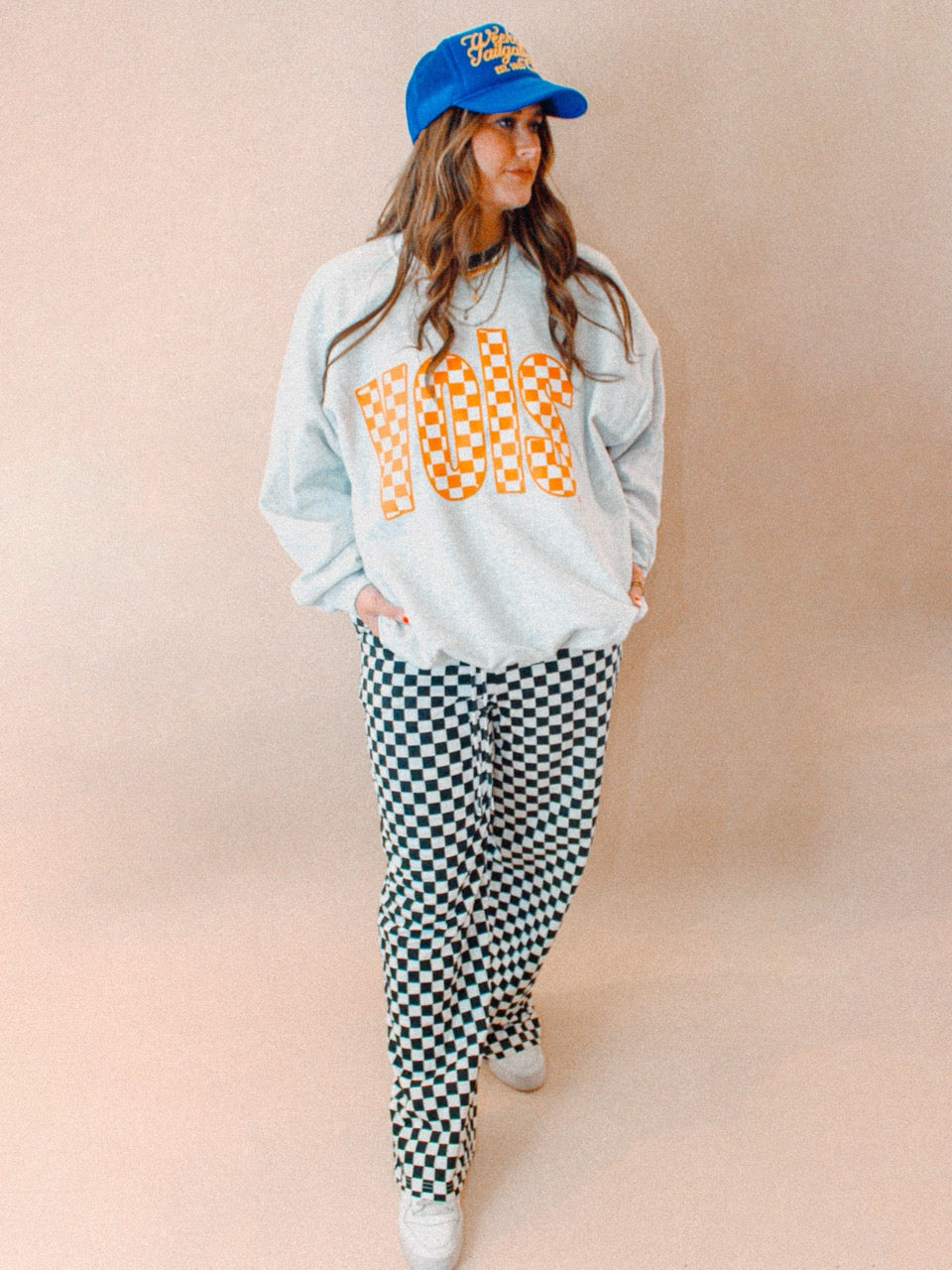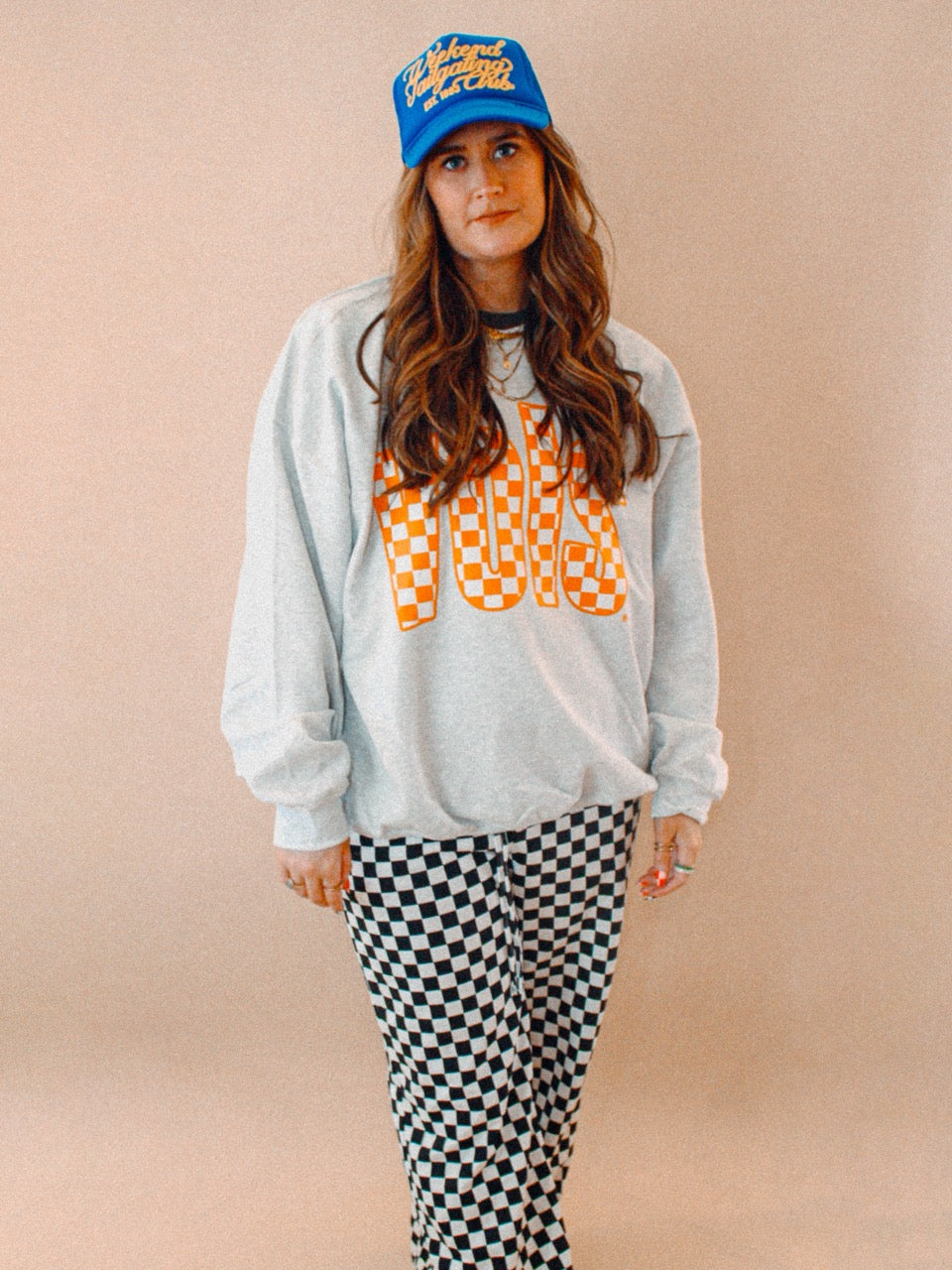 Show the love for your favorite team in this Tennessee VOLS checkerboard oversized sweatshirt that is inspired by vintage 90s college sports sweatshirt, perfect for Game Days!