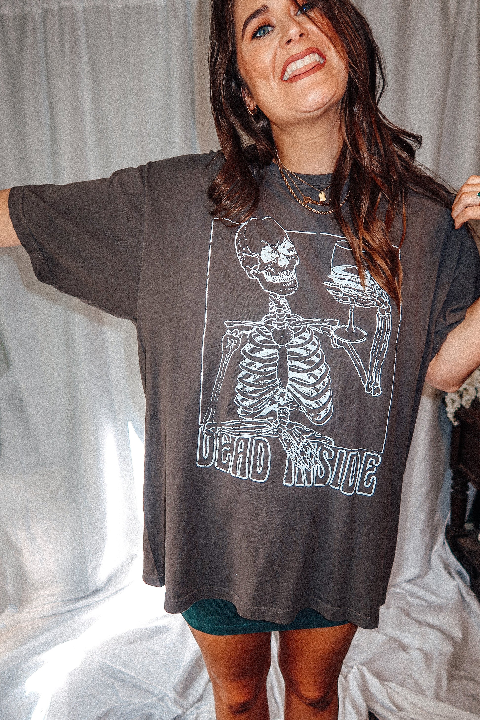 Show off your mood in our Dead Inside boxy oversized tshirt, perfect for spooky season or everyday to show everyone how you're feeling!