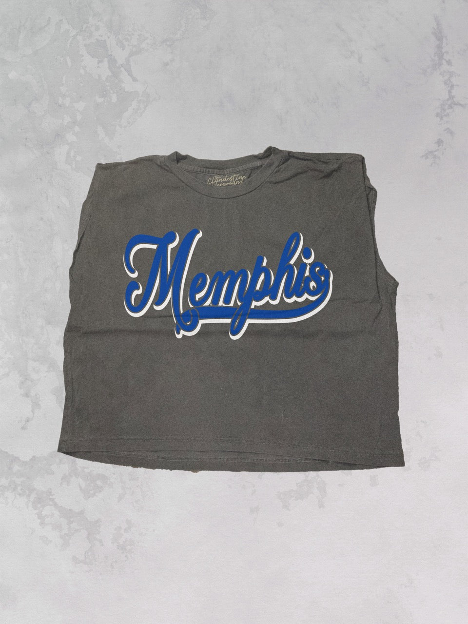 Show the love for your favorite city in this Memphis oversized muscle tank that is inspired by vintage 90s college muscle tanks & perfect for Game Day!