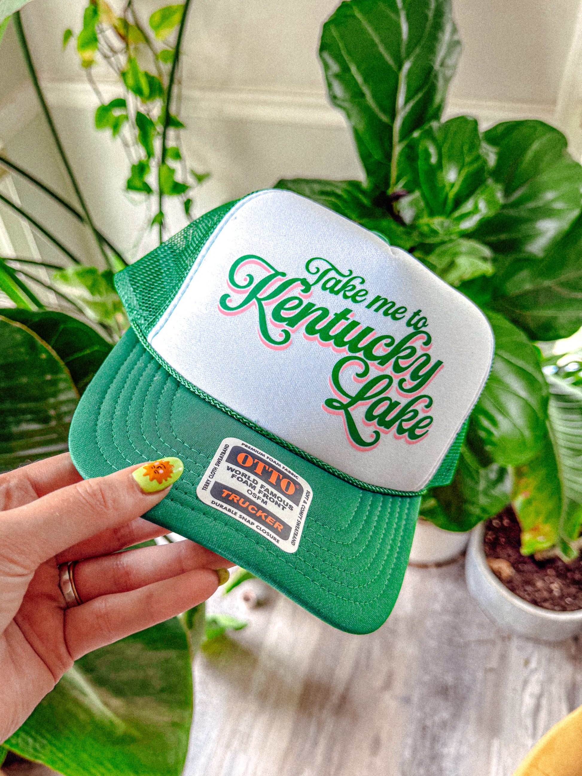 Show off your style while lounging by the Lake in our Take me to Kentucky Lake trucker hat.