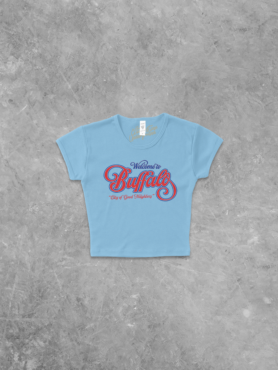 Show off the love for your fave city in this Welcome to Buffalo retro sports inspired 90's style baby tee!